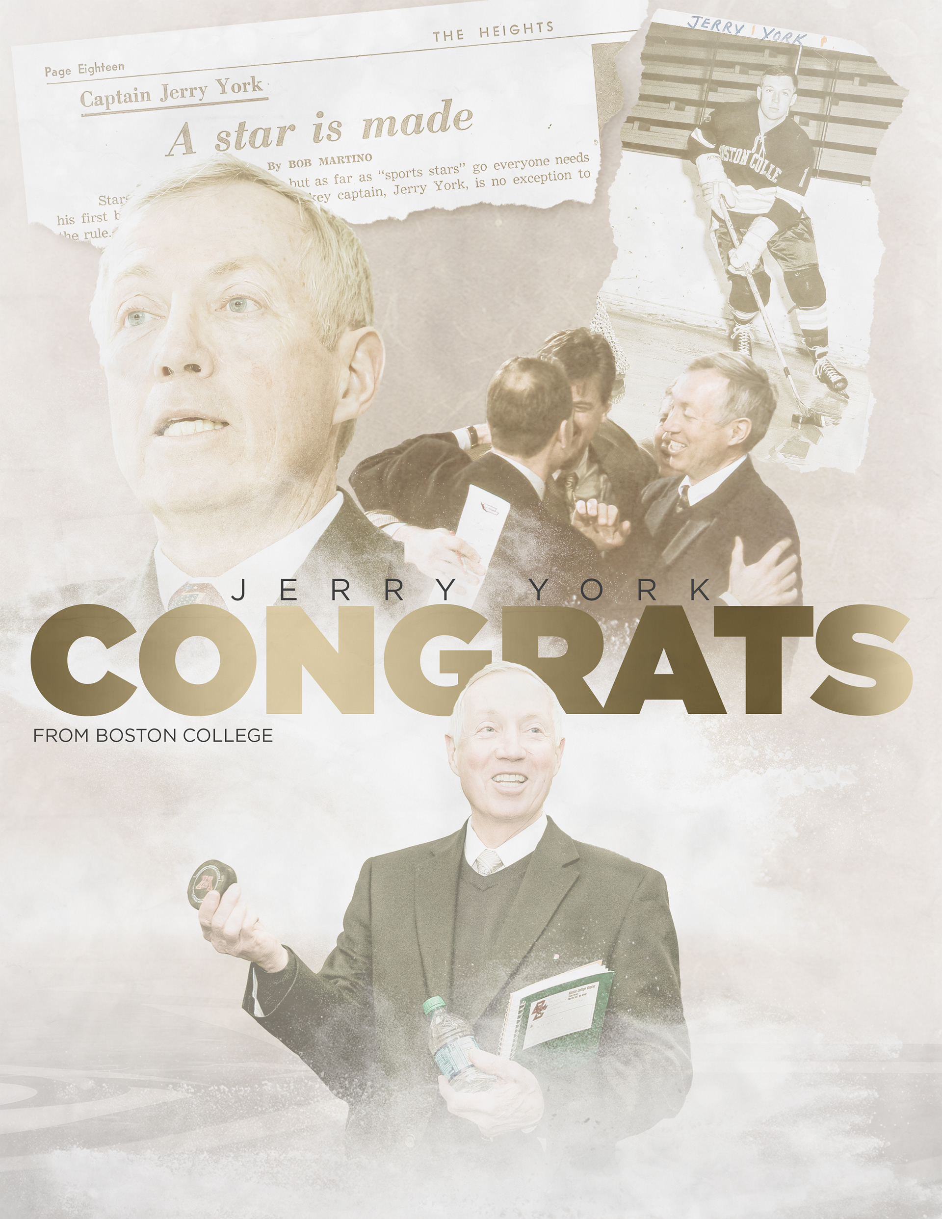 the primary mark incorporates the merged "bc" with "100" yet includes other aspects of Boston College. the block-style font used for text on the outer circle of the mark, combined with the official Boston College throwback logo, emphasizes the tradition held in Boston College hockey. the silhouette of Gasson hall - the most prominent building on the Boston College campus - runs through the middle of the mark, housing five stars that are symbolic of the five national championships won by Boston College.